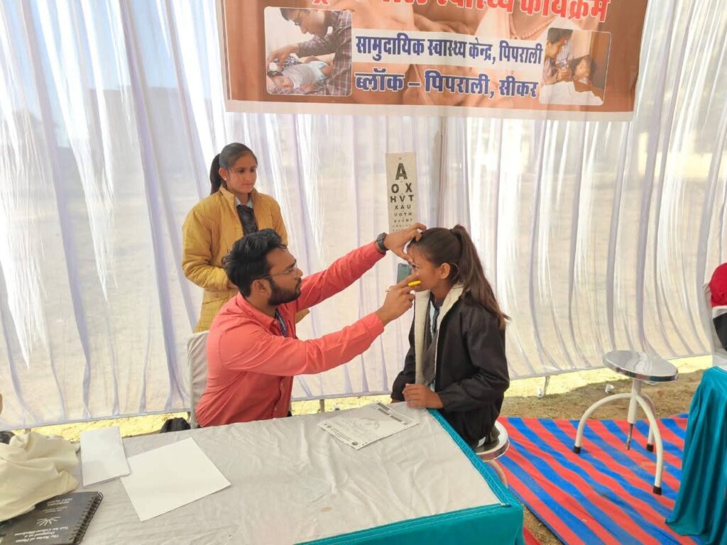 Sikar, Rajasthan : 130 children were treated at the RBSK camp held on Wednesday at the Community Health Center, Piprali, and five were referred for treatment at higher institutions. Pediatrician Dr. Amit Jain, ophthalmologist Dr. Jayvardhan Wathar, ENT specialist Dr. Javed, dermatologist Dr. Kanchan Kumawat, and dentist Dr. Vasudev Saini provided their services.